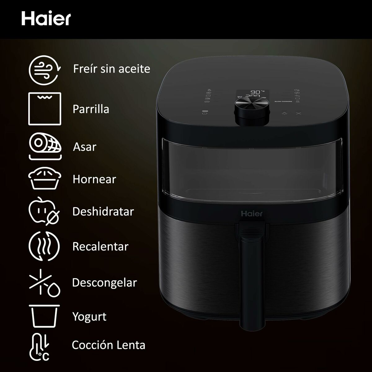 La friteuse à air Cecotec HAF5TWA 011 est un appareil conçu pour cuisiner de manière saine et efficace, utilisant de l’air chaud au lieu de grandes quantités d’huile. Avec une puissance de 2000 W, elle assure un chauffage rapide et une cuisson uniforme qui préserve la texture croustillante et la saveur naturelle des aliments. Sa capacité de 6,5 litres est idéale pour préparer des portions généreuses, adaptée aux familles ou aux réunions, permettant de cuisiner viandes, légumes, desserts et snacks avec facilité. Ce modèle possède un type de prise européenne (prise EU), facilitant son utilisation dans les pays avec cette norme sans adaptateurs. Sa finition en noir lui confère un aspect moderne et polyvalent qui s’intègre dans toute cuisine. Concernant les matériaux, il combine métal pour la résistance et la durabilité, avec du plastique sur les parties extérieures et de manipulation pour une prise en main sûre et confortable. Cette combinaison renforce la robustesse sans alourdir ni compliquer le nettoyage. La Cecotec HAF5TWA 011 offre une alternative pratique et saine pour ceux qui souhaitent déguster des fritures avec moins de graisses, optimisant temps et résultats grâce à son équilibre entre puissance et capacité. En résumé, cette friteuse à air représente une solution fonctionnelle et polyvalente pour cuisiner efficacement, confortablement et avec un design adapté aux besoins actuels du foyer.
